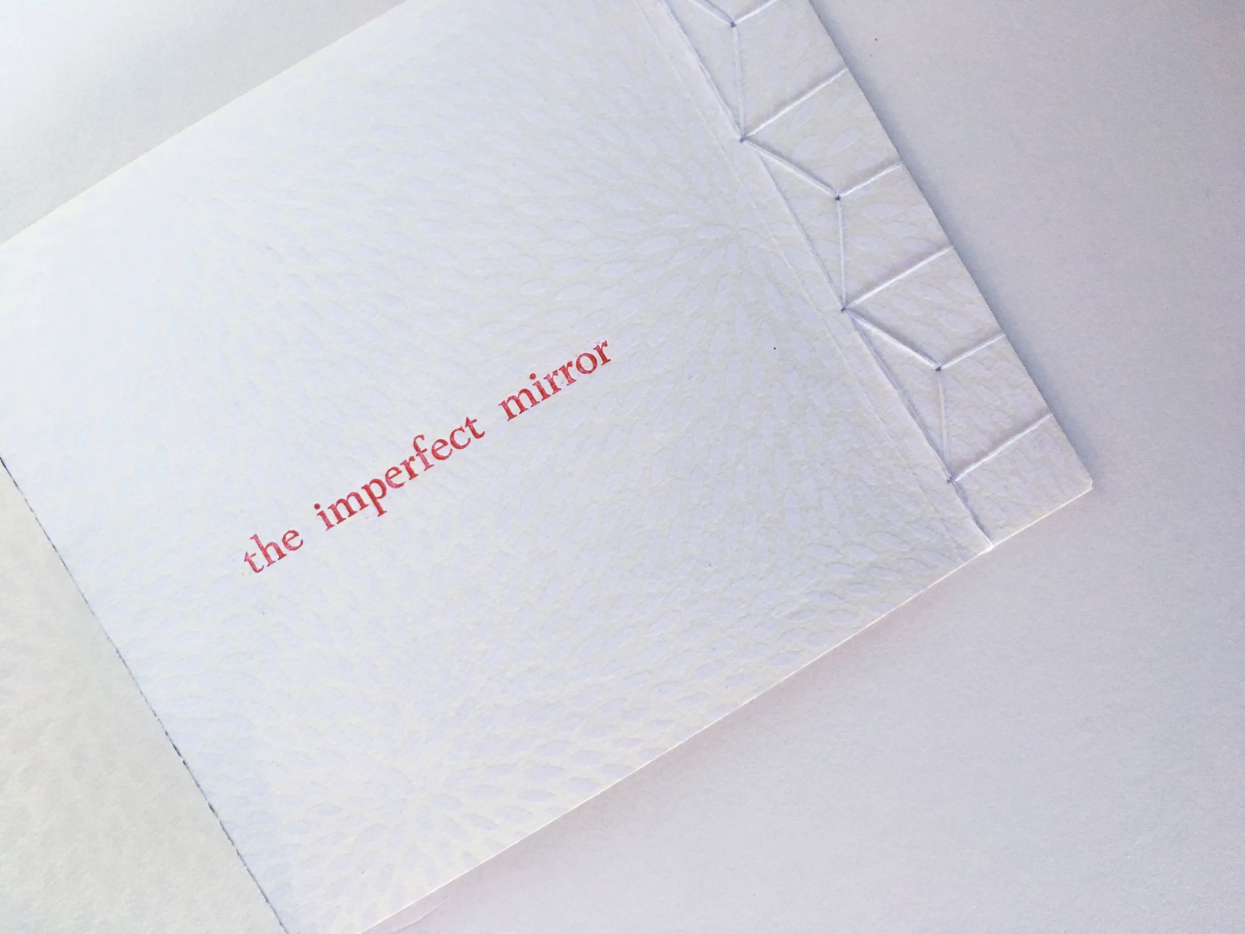 All of the type was handset and printed using a restored Albion press. The patterns on the covers and inside pages as well as the blind contour faces were hand drawn and then transferred to a screen to screen print them on to the pages. The book is bound using a simple Japanese stitch on each side.
