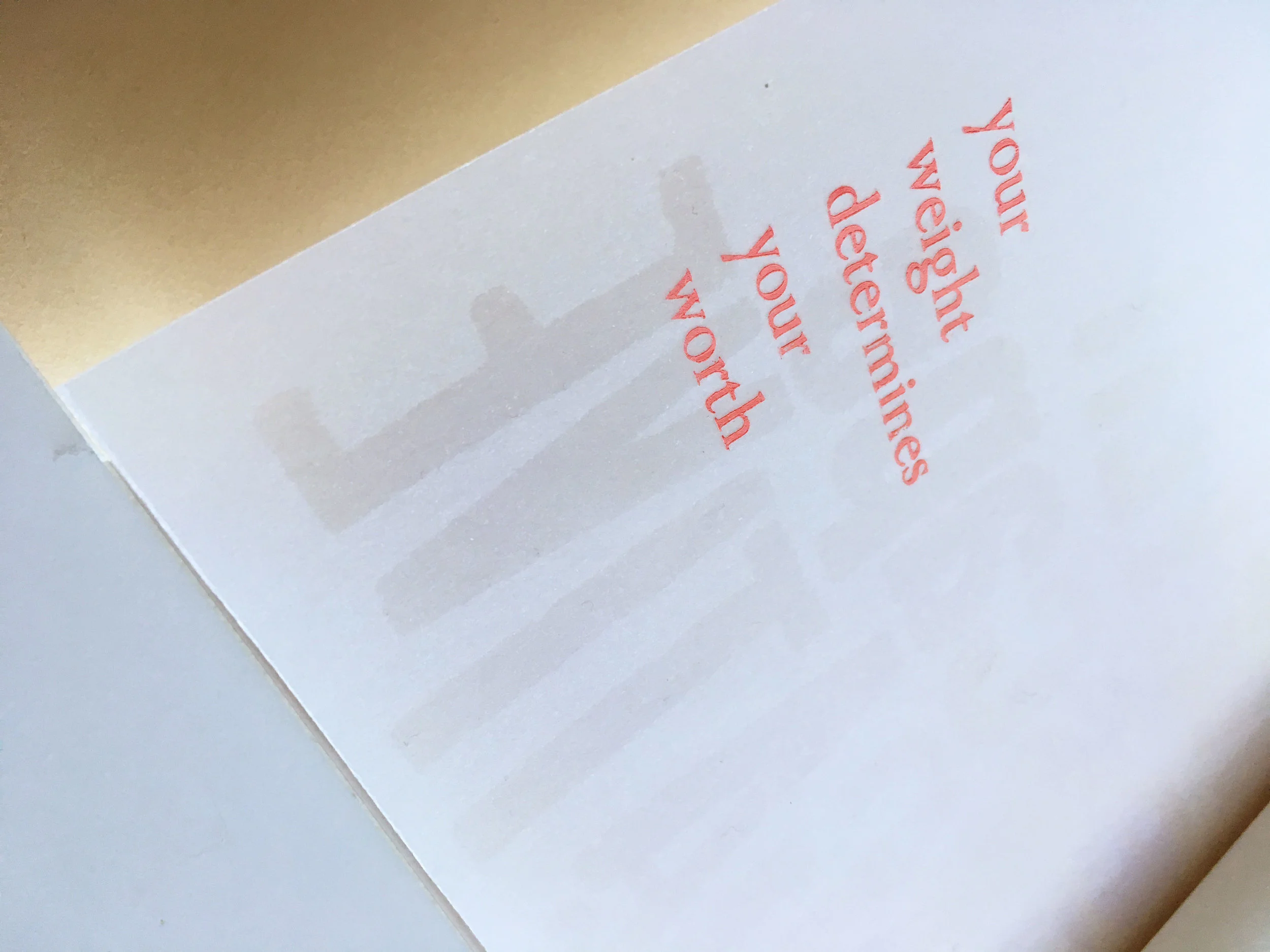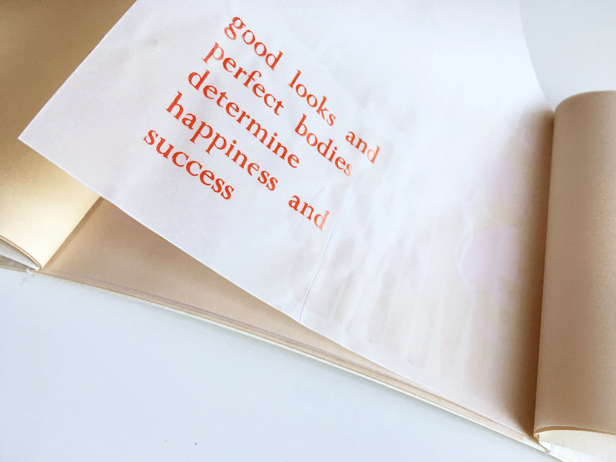 Taking it back to the basics, this book was handmade in Florence, Italy. I believe that body image is something that affects everyone, and I have been struggling with it more and more recently. This was a three month process that started just as an idea and grew into a self portrait.